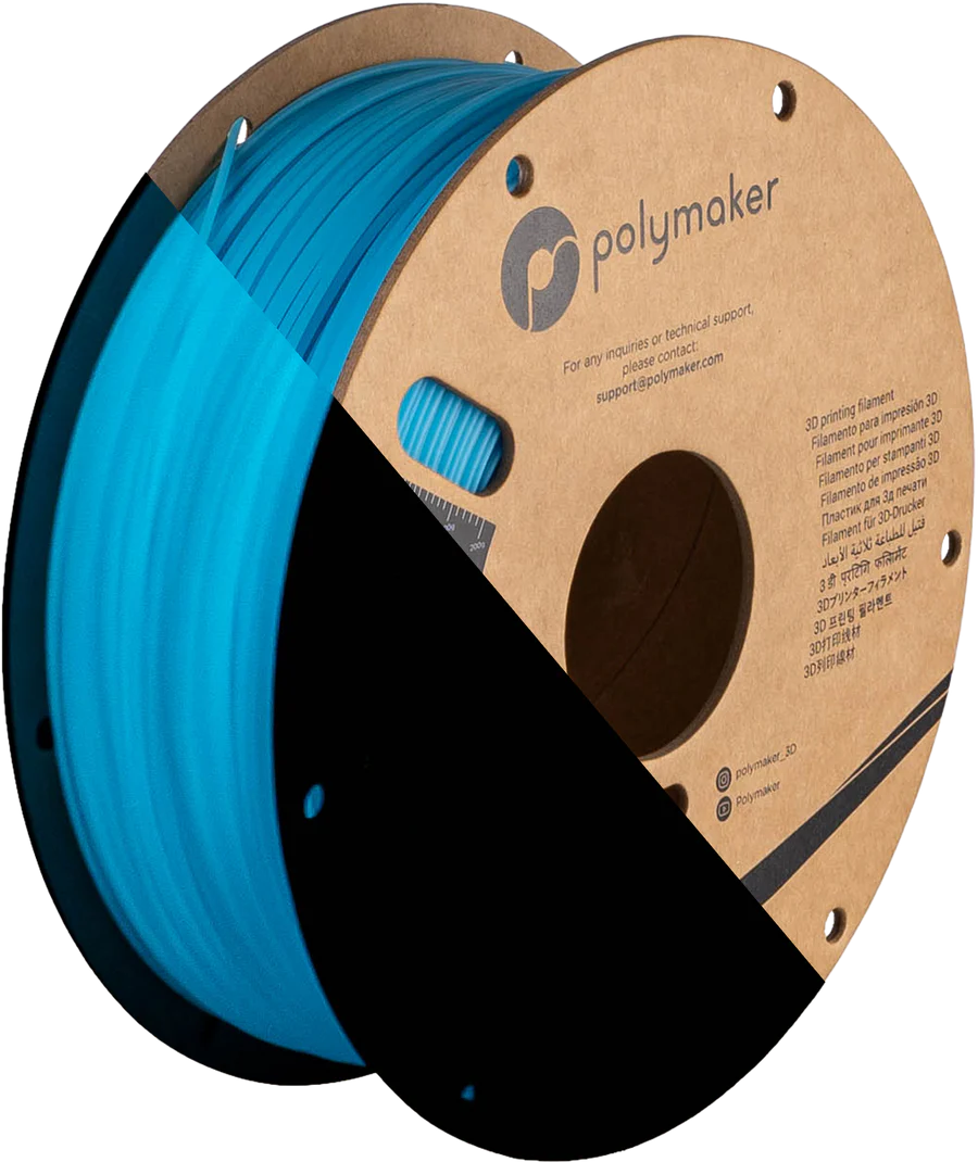 Filament do druku 3D Polymaker PolyLite PLA o zwiększonej ilości zawierający dodatku, dzięki któremu wydrukowany element świeci własnym, w tym przypadku niebieskim, światłem po uprzednim naświetleniem światłem z zewnątrz. Filament do druku 3D Polymaker PolyLite PLA jest przeznaczony dla wszystkich drukarek FFF/FDM 3D. Produkowany jest on w oparciu o opatentowaną przez firmę Polymaker technologię Jam-Free ™, która zapewnia sprawne wytłaczanie oraz zapobiega zacięciom.