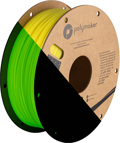 Filament do druku 3D Polymaker PolyLite PLA o zwiększonej ilości zawierający dodatku, dzięki któremu wydrukowany element świeci własnym, w tym przypadku żółtym, światłem po uprzednim naświetleniem światłem z zewnątrz. Filament do druku 3D Polymaker PolyLite PLA jest przeznaczony dla wszystkich drukarek FFF/FDM 3D. Produkowany jest on w oparciu o opatentowaną przez firmę Polymaker technologię Jam-Free ™, która zapewnia sprawne wytłaczanie oraz zapobiega zacięciom.